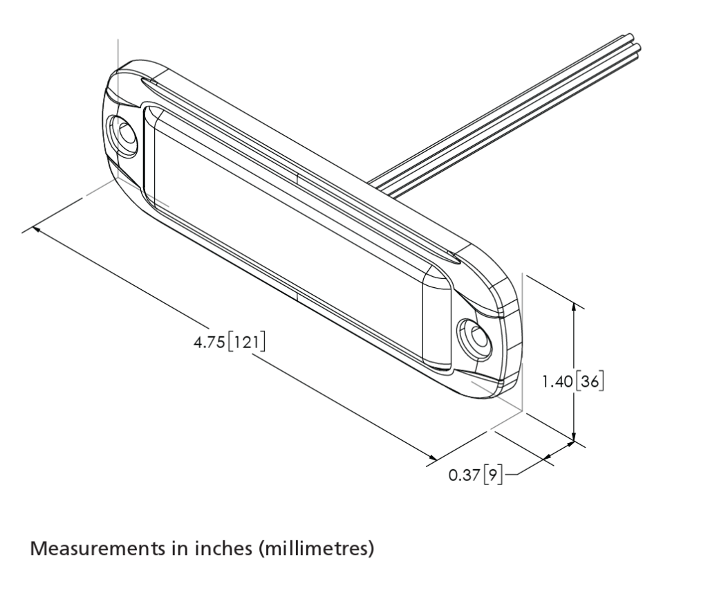 Anchura: 121 mm (4,75"), Altura: 36 mm (1,40"), Profundidad: 9 mm (0,37")