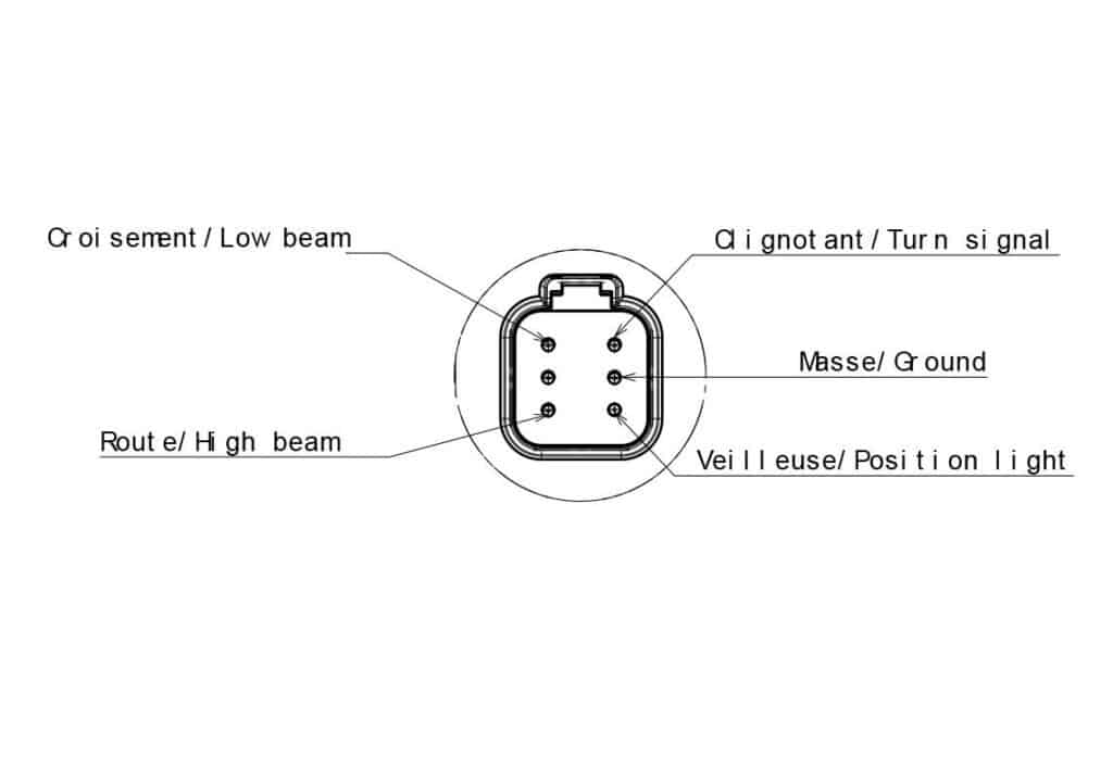 | Consumption | At 24V : Low beam 30 W / Low beam + De-icing 50 W / High beam 60 W / High beam + De-icing 80 W / Turn indicator 16 W / Position light 5 W |
