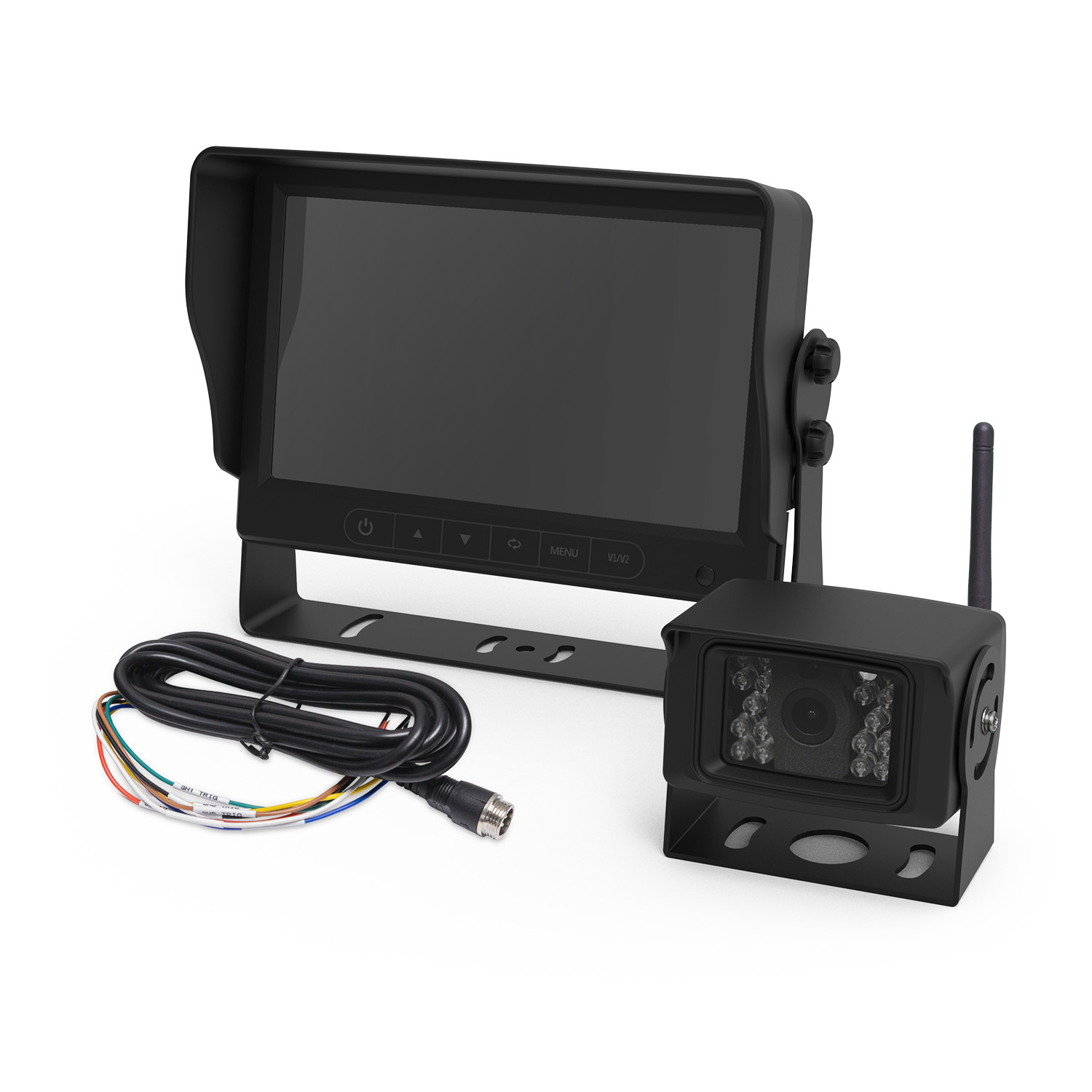 Comprising a feature packed 7.0” LCD high resolution color monitor and a basic color infrared wireless camera, the K7000B-WK delivers excellent picture quality even in low-light conditions. The compact monitor includes a sun screen and allows for unobtrusive installation without compromising viewable screen area. Kit is expandable up to 4 cameras (C2013B-WC only).